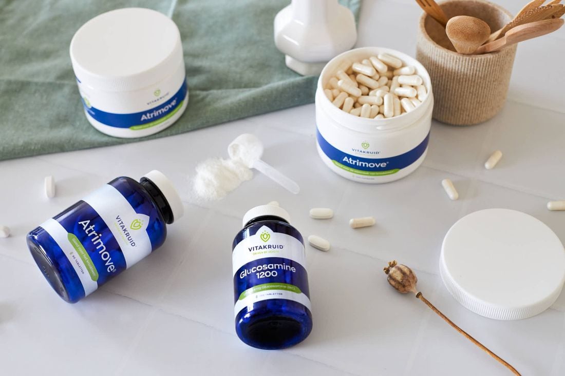 Atrimove® Glucosamine Complex is een voedingssupplement dat deze drie stoffen in de juiste verhoudingen bevat. Een dagdosering bevat 1750 mg elementair glucosamine, 1500 mg chondroïtine en 3000 mg MSM. Daarnaast bevat Atrimove® verschillende ondersteunende voedingsstoffen.