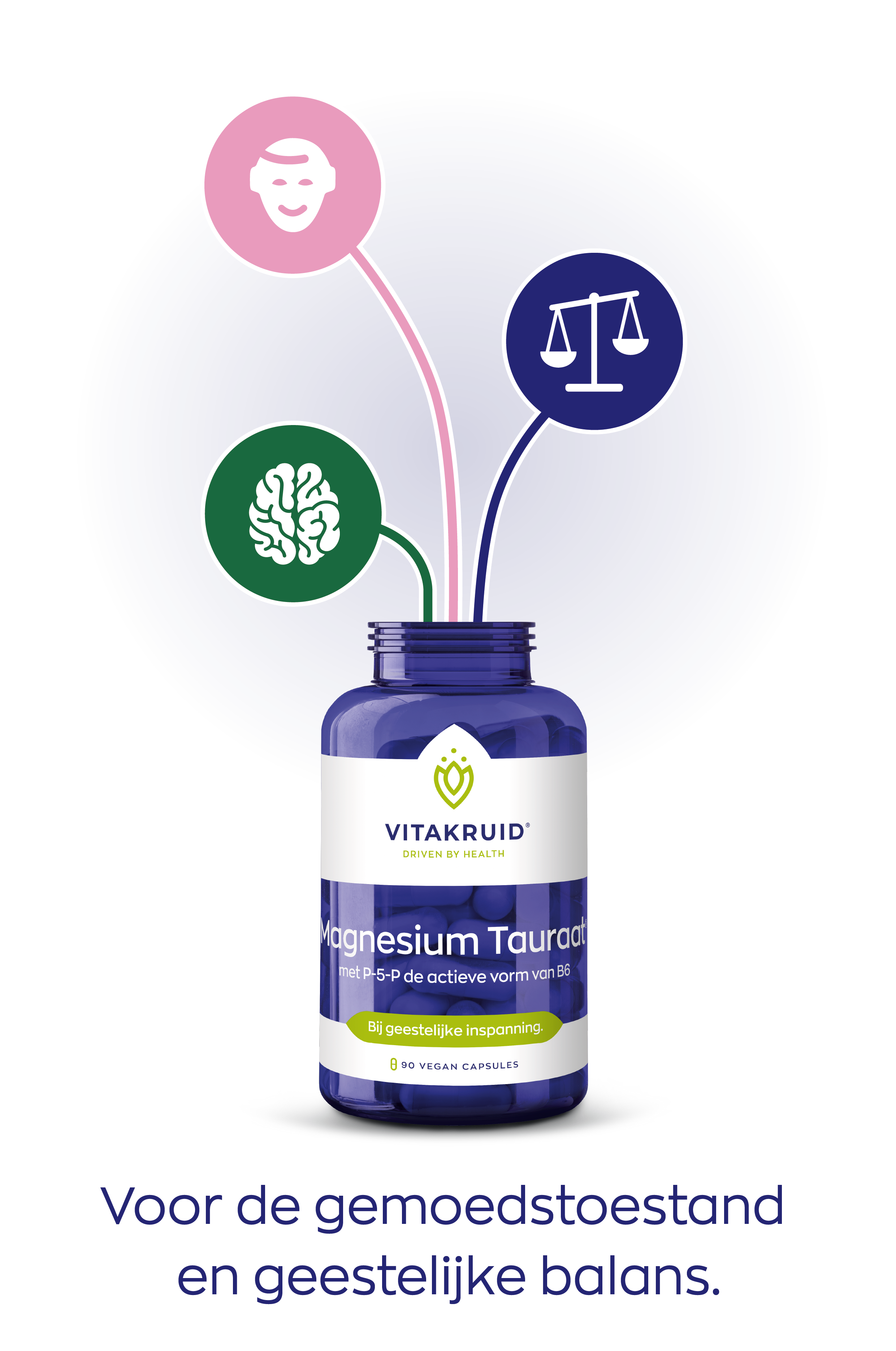 Voor de formule van Magnesium Tauraat met P-5-P is gekozen voor de biologisch actieve vorm van vitamine B6, pyridoxaal-5-fosfaat (P-5-P). P-5-P heeft een hoge biologische beschikbaarheid en wordt daardoor direct door het lichaam gebruikt. Bovendien is P-5-P de meest veilige en goed verdraagbare vorm van vitamine B6. Daarmee sluit P-5-P goed aan bij de hoogwaardige samenstelling van magnesiumtauraat. Aanvullend ondersteunt vitamine B6 de geestelijke balans en gemoedstoestand, onder andere via de regulatie van hormonen.