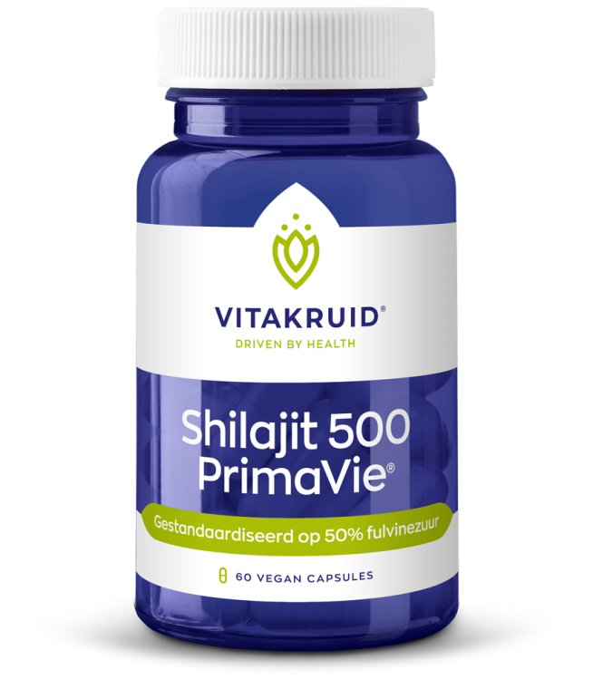 Deze formule bevat het gepatenteerde PrimaVie®: een gezuiverd Shilajit-extract van hoge kwaliteit. PrimaVie® wordt gewonnen uit compleet, onverdund Shilajit-materiaal, wat betekent dat naast fulvinezuur ook andere natuurlijke componenten behouden blijven. Denk aan humusstoffen, spoorelementen en overige bioactieve stoffen uit de oorspronkelijke Shilajit-hars.