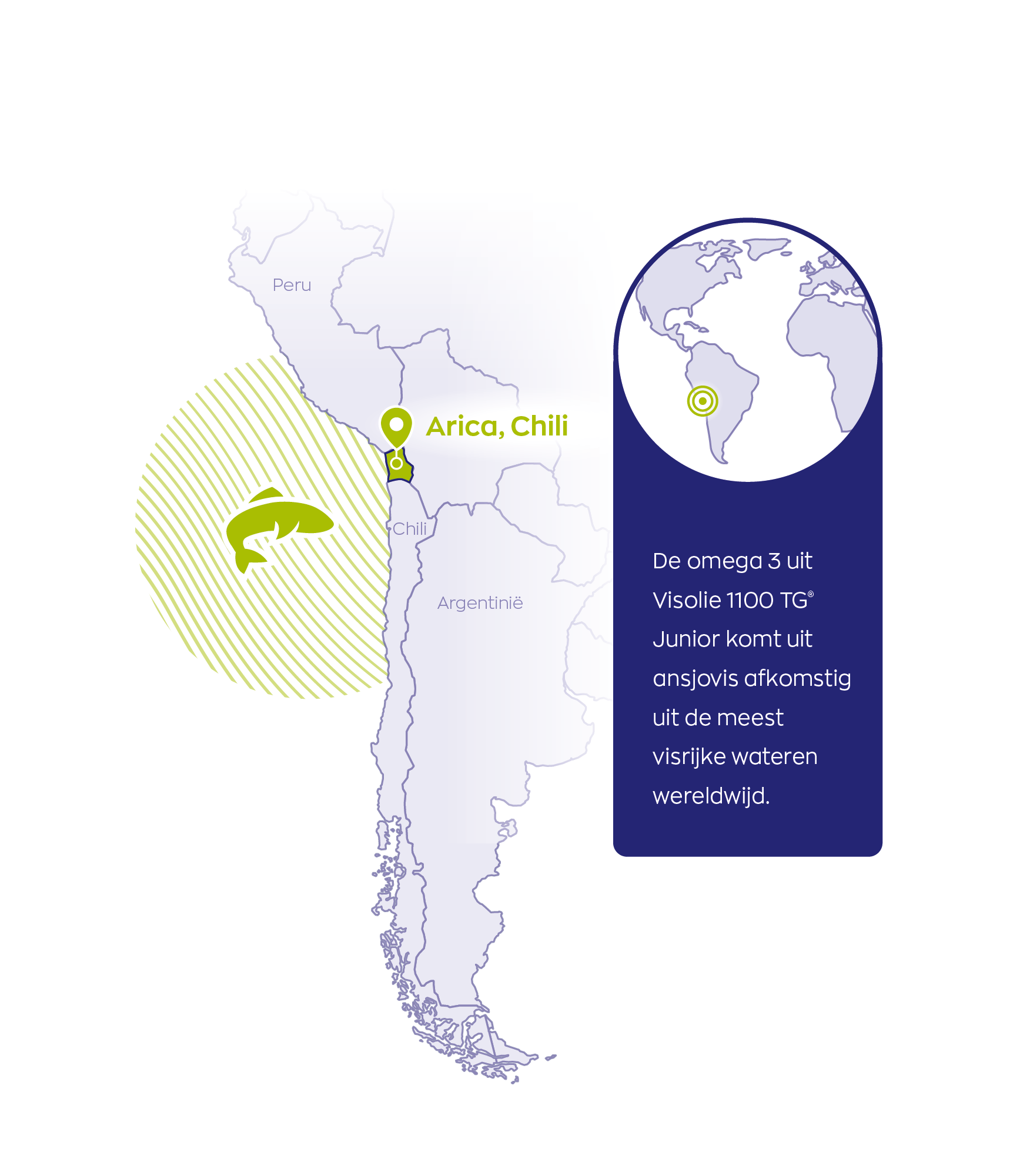 De vis wordt gevangen in de voedselrijke wateren voor de kust van Chili, een van de best beheerde en meest visrijke gebieden ter wereld. De volledige verwerking, van vangst tot productie van de visolie, vindt plaats in Chili door onze leverancier GoldenOmega®. Dankzij deze verticale keten blijft het productieproces kort, transparant en goed controleerbaar, wat bijdraagt aan de hoge kwaliteit en versheid van de visolie.